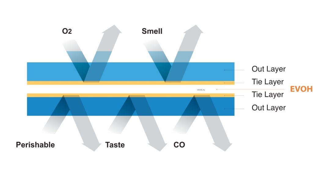 KORUPLAS gelişen MAP uygulamalarına paralel olarak sektörün taleplerine cevap vermek için kurulmuş olup, ana faaliyet KORUPLAS MAP teknolojisi doğrultusunda üretimini gerçekleştirdiği ürünlerde bariyer katmanı olarak EVOH kullanılmaktadır. EVOH’un neme karşı hassas bir malzeme olması nedeniyle bu tip folyolar koekstrüzyon yöntemiyle üretilmekte ve EVOH ara katmanda kullanılmaktadır. Oksijen bariyeri yönünden, polimerler arasında EVOH ilk sıralarda yer almaktadır. EVOH, oksijen geçirgenliğinin yanı sıra, koku, aroma, vitaminler ve organic solventler için de önemli bir bariyer direnci sağlamaktadır.
